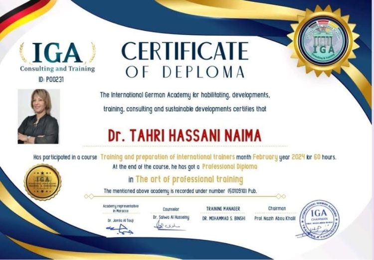 شهادة دبلوم في التدريب المهني – الدكتورة الطاهري الحسني نعيمة – EN