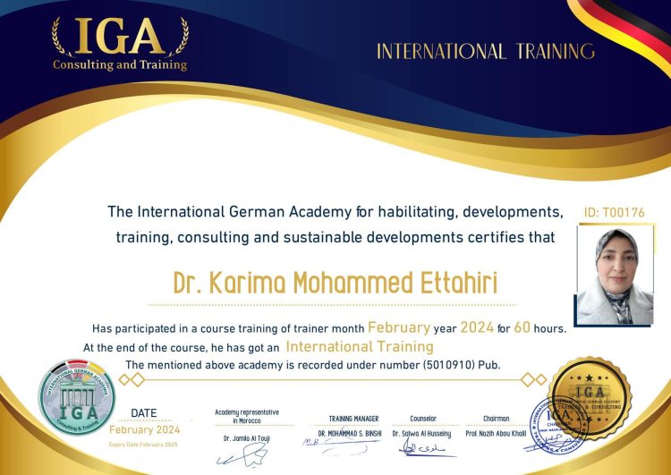 شهادة تدريب مدربين دوليين – الدكتورة كريمة محمد الطاهري