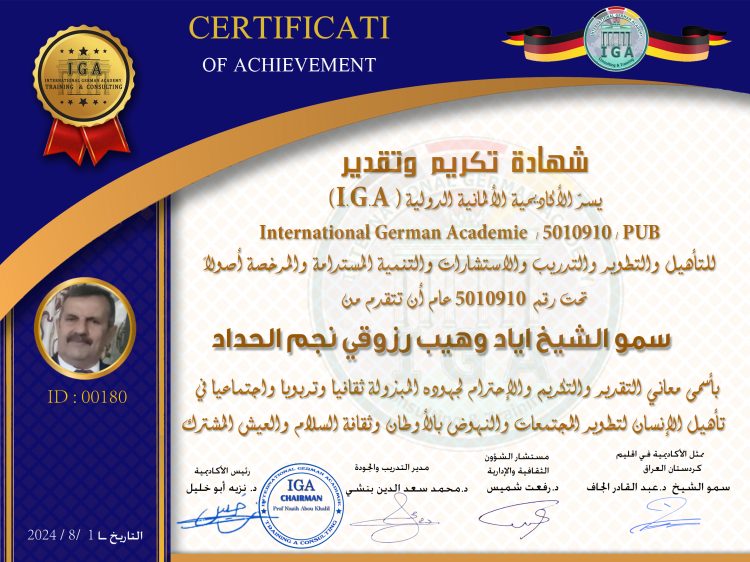 توثيق وتصديق أوراق اعتماد الدكتور محمد وليد مهدي ممثلاً للأكاديمية الألمانية الدولية  في جمهورية العراق