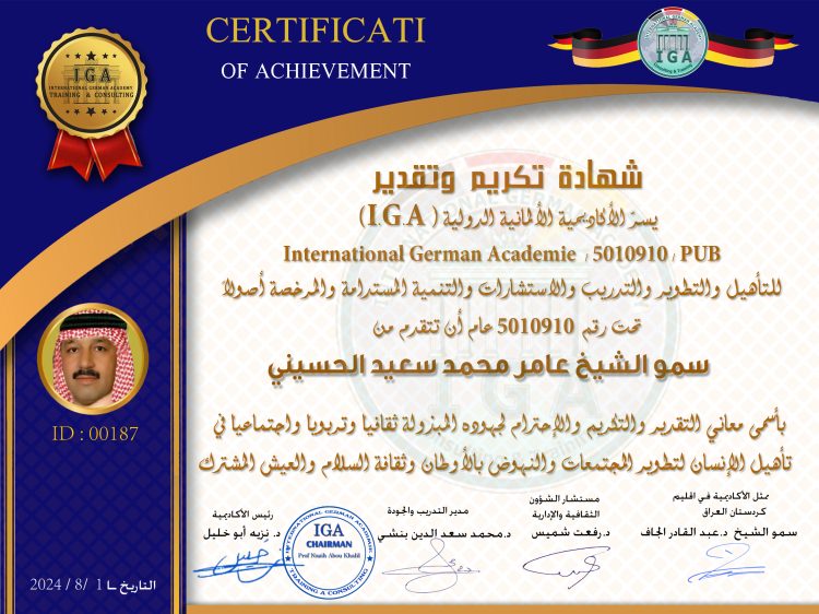 توثيق وتصديق أوراق اعتماد الدكتور محمد وليد مهدي ممثلاً للأكاديمية الألمانية الدولية  في جمهورية العراق