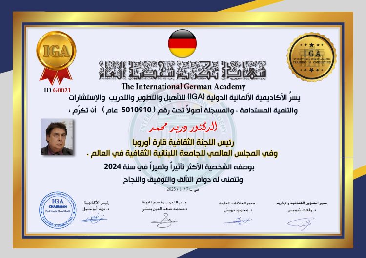 توثيق وتصديق أوراق اعتماد الدكتور محمد وليد مهدي ممثلاً للأكاديمية الألمانية الدولية  في جمهورية العراق