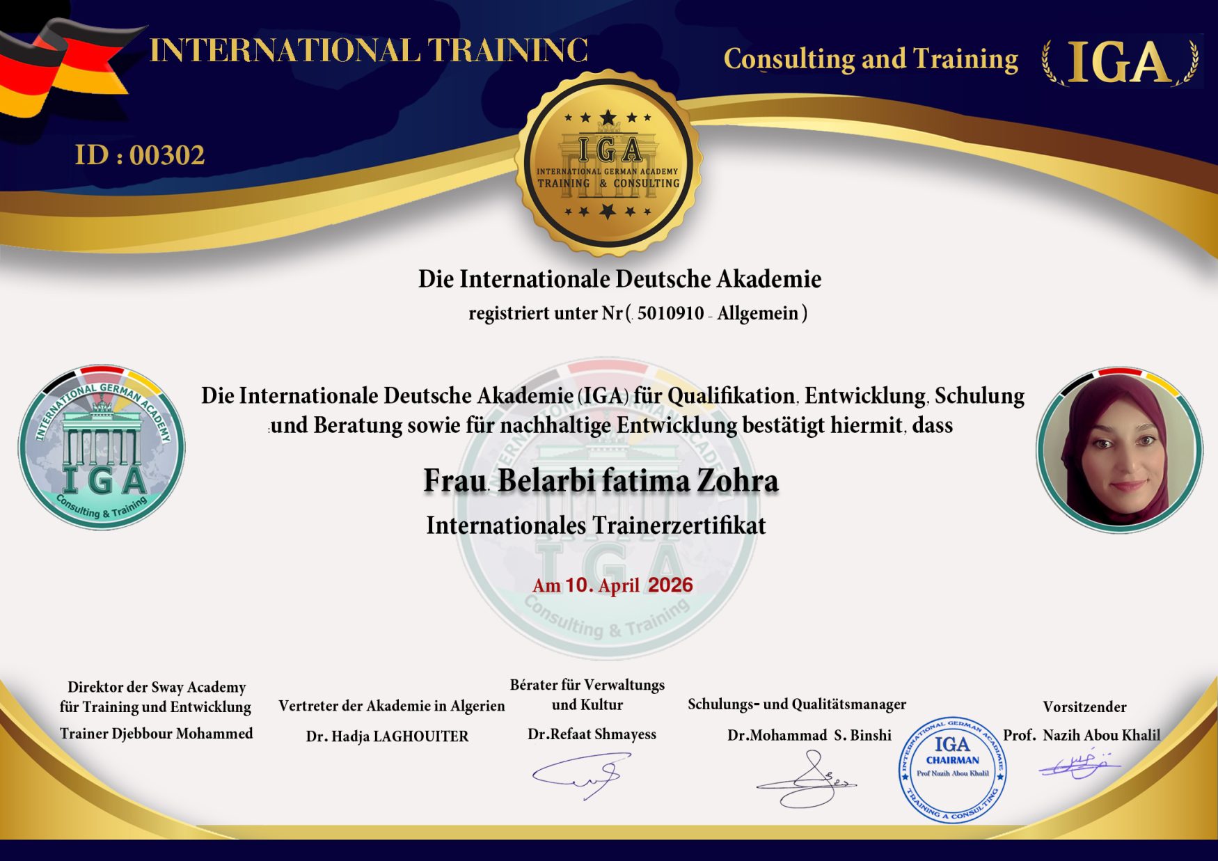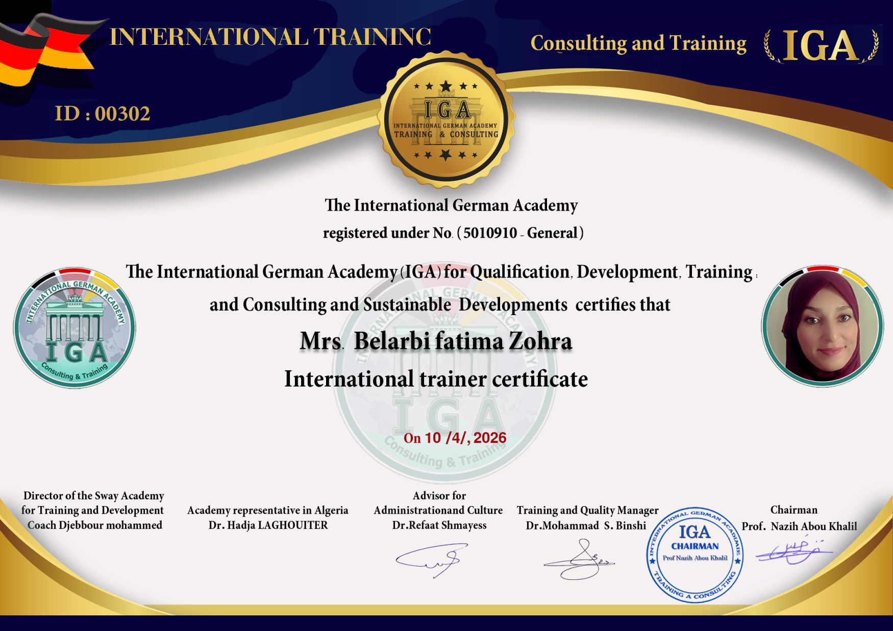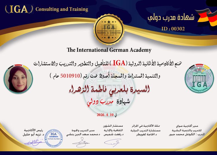 السيدة بوزيري موهوبة – شهادة مدرب دولي