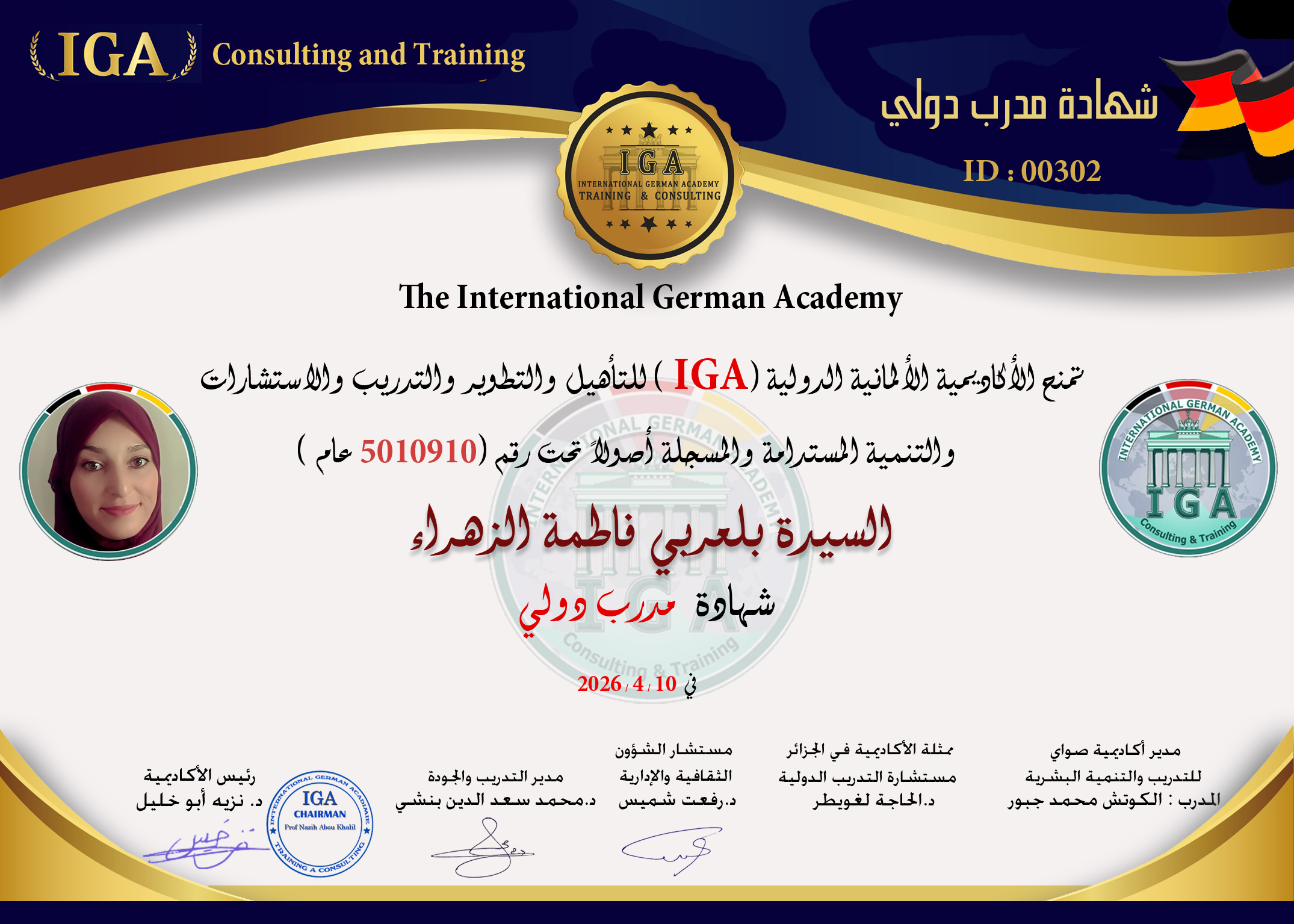 توثيق وتصديق أوراق اعتماد الدكتور محمد وليد مهدي ممثلاً للأكاديمية الألمانية الدولية  في جمهورية العراق